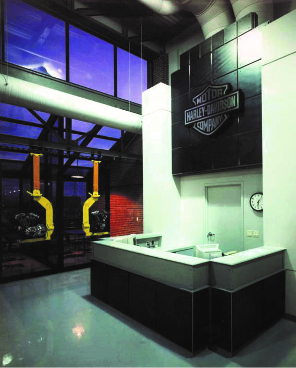 As a direct result of my interior design work and client relationship during this project, I was invited by the Harley Davidson Public Relations department to work with them to co-create a Grand Opening of the new facility centered on customer experience which included a 100-mile ride to the building, in-depth tours which I led along with live music and a celebration of the successful project. As a final celebration, a photo was taken and signed by me and everyone involved in the project and placed in a time capsule within the column in the museum to be opened on the 200th anniversary of HD.